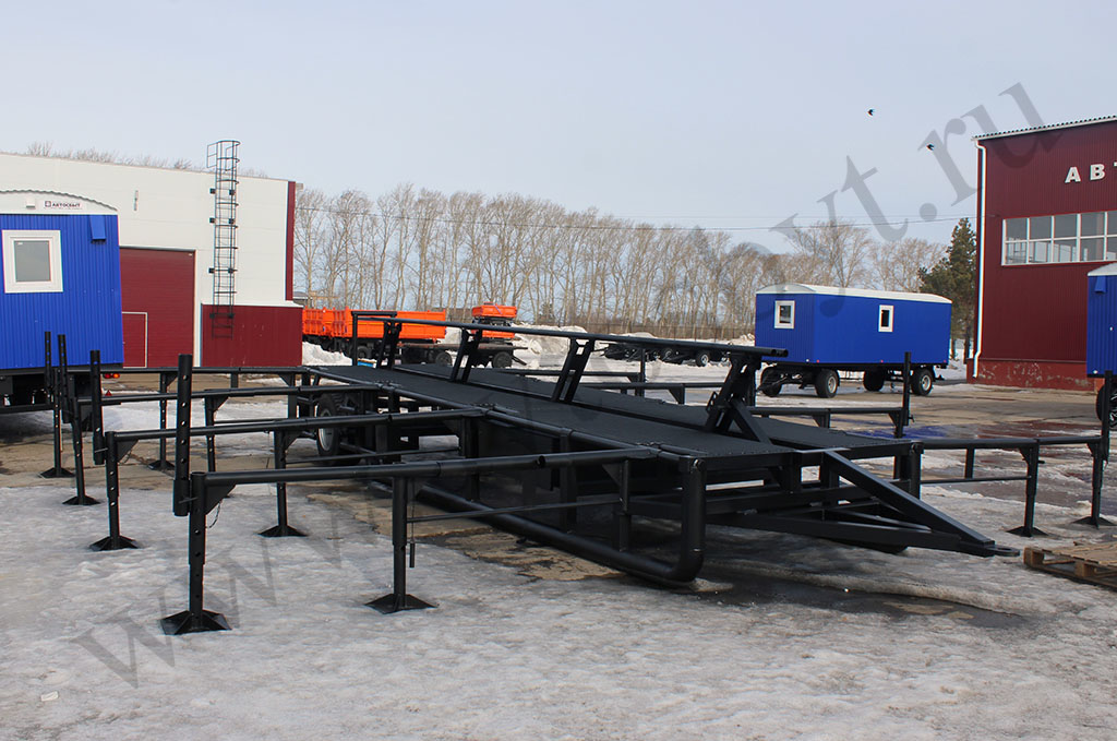 Предназначен для приема, складирования и выдачи насосно-компрессорных труб и штанг на буровую установку, выполнен по схеме одноосного тракторного полуприцепа.